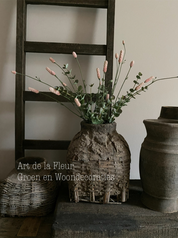 Subtiel samen gebonden takken Eucalyptus en Roze Pimpernel