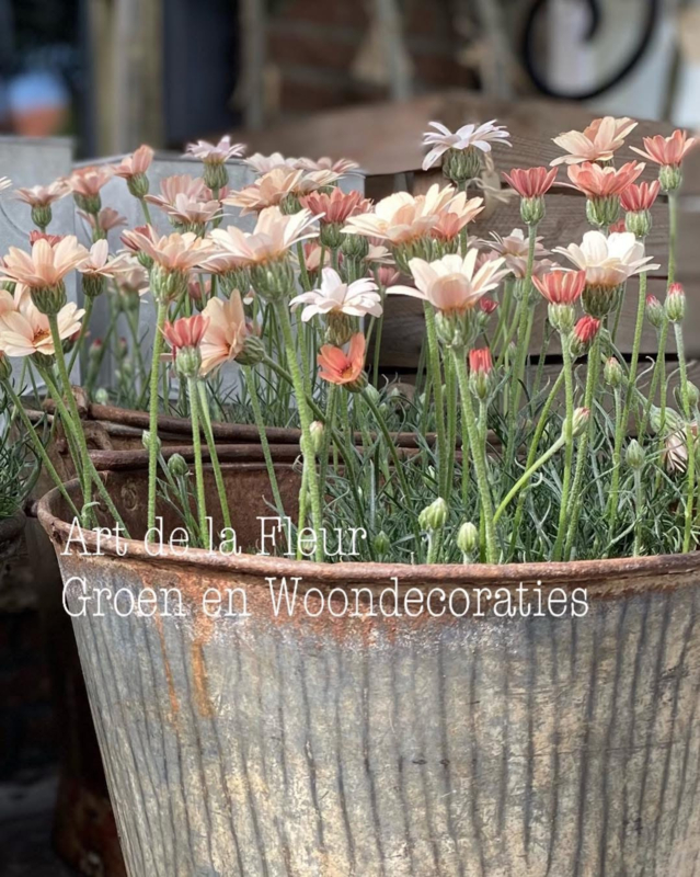 Marokkaanse Margriet wit potmaat 17 cmDeze zijn heel stevig en zitten vol met knopjes ( nog weinig open bloemen )