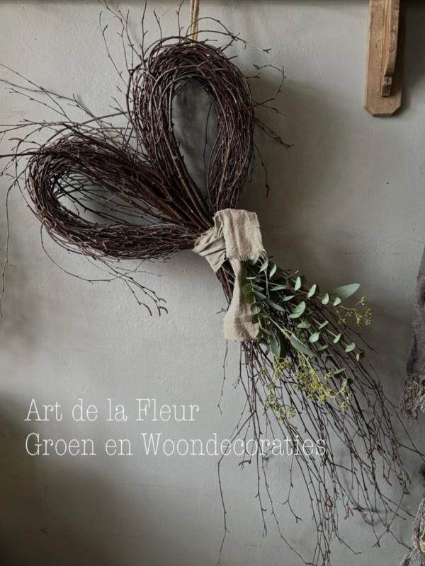 Let op ! Elk hart is uniek de vorm en de hoeveelheid groene takjes kan afwijken van de foto.