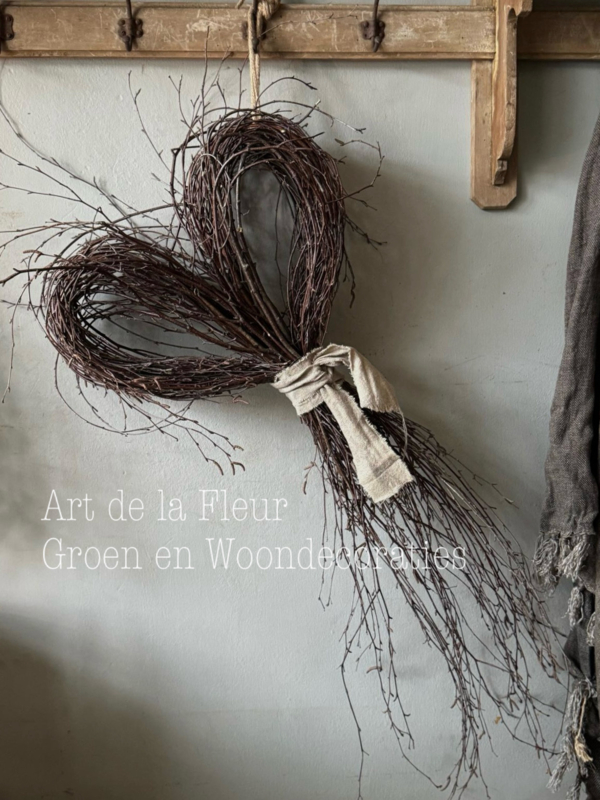 XXL Berken hart ong 75 cm afgewerkt met naturel bakkersdoekXXL Berken hart ong 75 cm